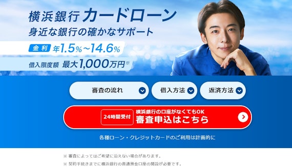 みずほ銀行の金利は2.0~14.0%と、低金利が魅力的です。さらに住宅ローンを契約中なら、年0.5%の金利引き下げ特典が適用されます。来店・郵送が一切不要でお申し込みが可能。