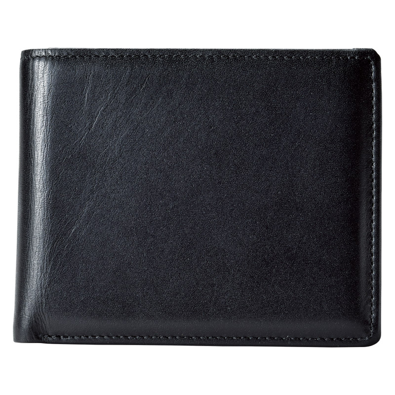 日本製牛革中べら付き札入れ(ブラック)