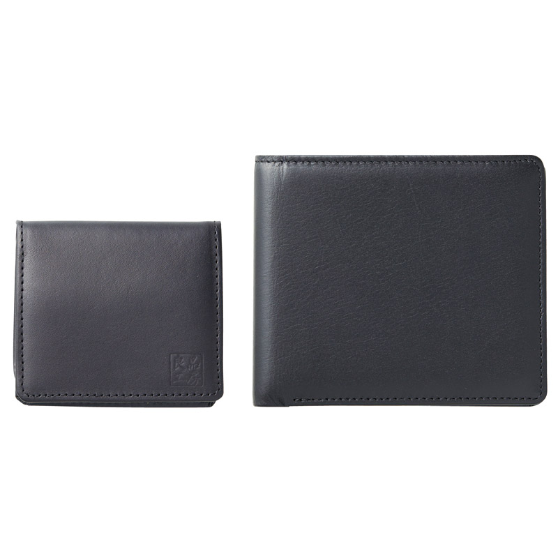 日本製牛革二つ折れ財布&小銭入れ(ブラック)