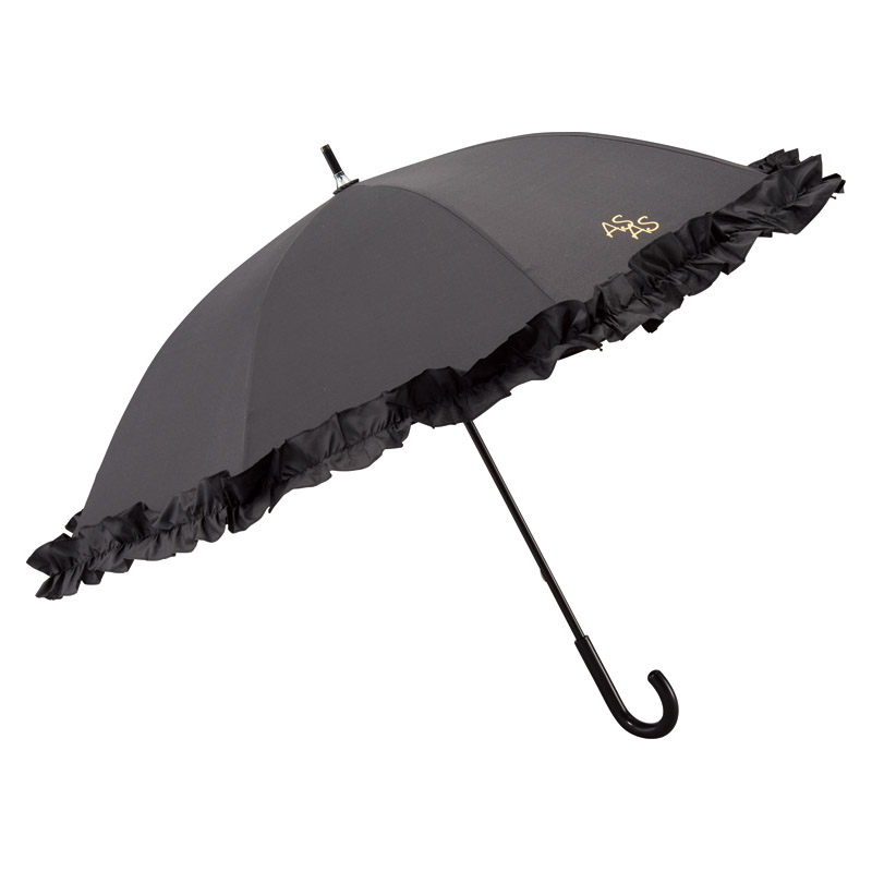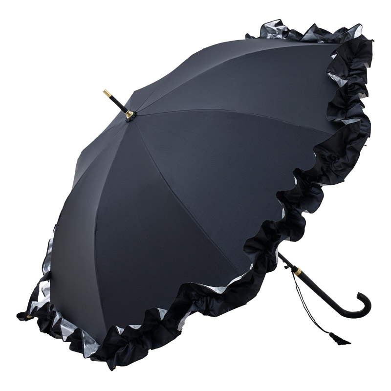 アズアズ 晴雨兼用遮光ジャンプ長傘一段フリル(ブラック)