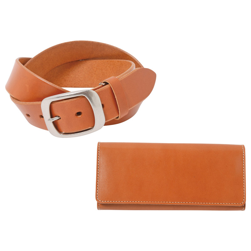 栃木レザー ベルト&ヌメ革長財布(ブラウン)