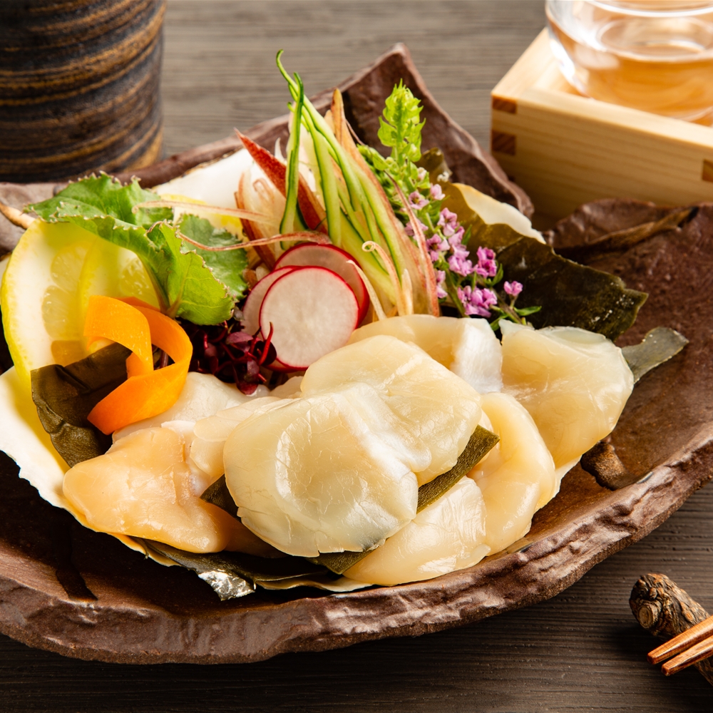 「魚匠えびす」 貝のうま味を楽しむ帆立の昆布〆と二種のだし...