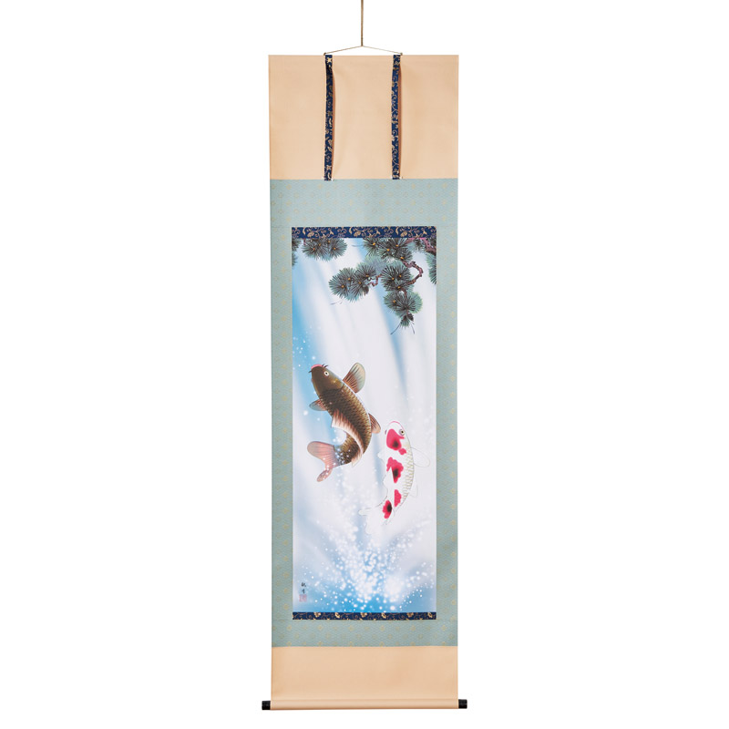 森山観月(尺五)掛軸 「夫婦滝昇鯉」