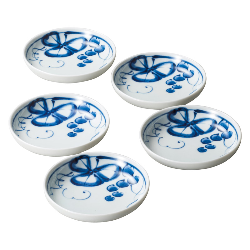 波佐見焼 古染青磁ぶどう絵 小皿5枚揃