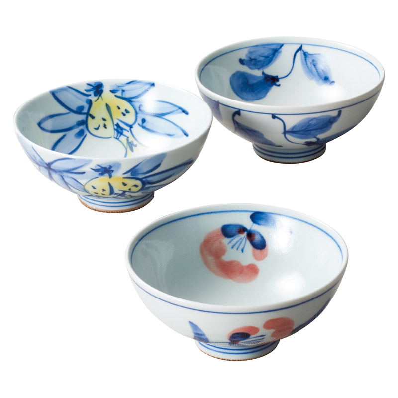 波佐見焼 古伊万里写絵色彩手染 茶漬3客揃