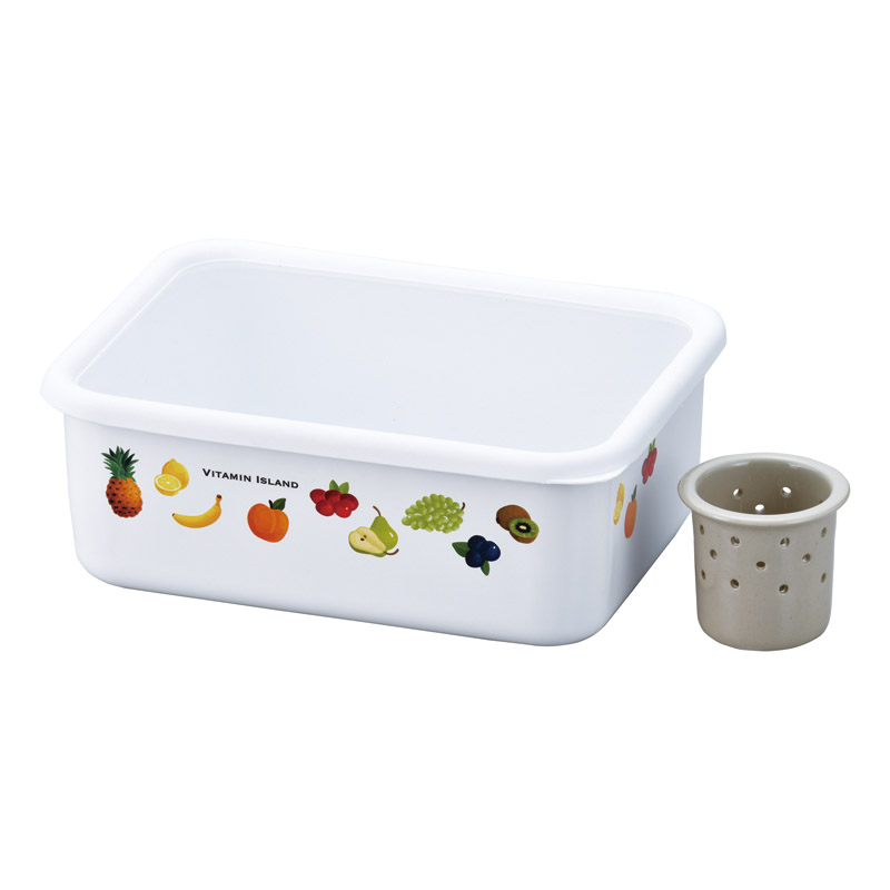 ビタミンアイランド ホーロー角型保存容器(水抜き容器付)