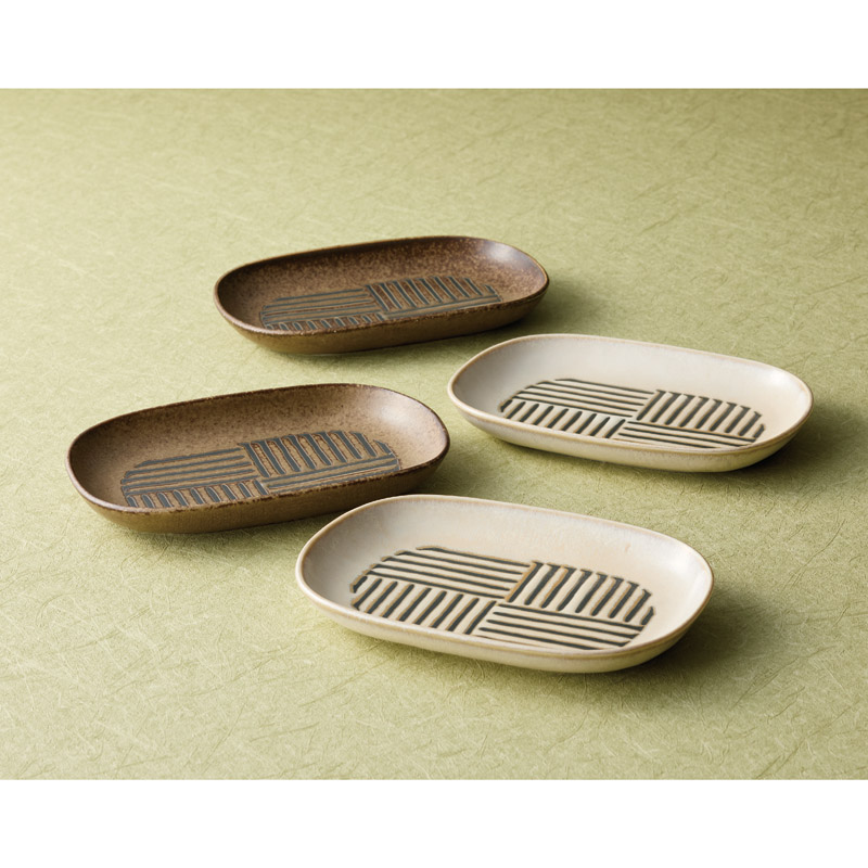 サンゴー 〈縞臼文〉 楕円皿4枚セット