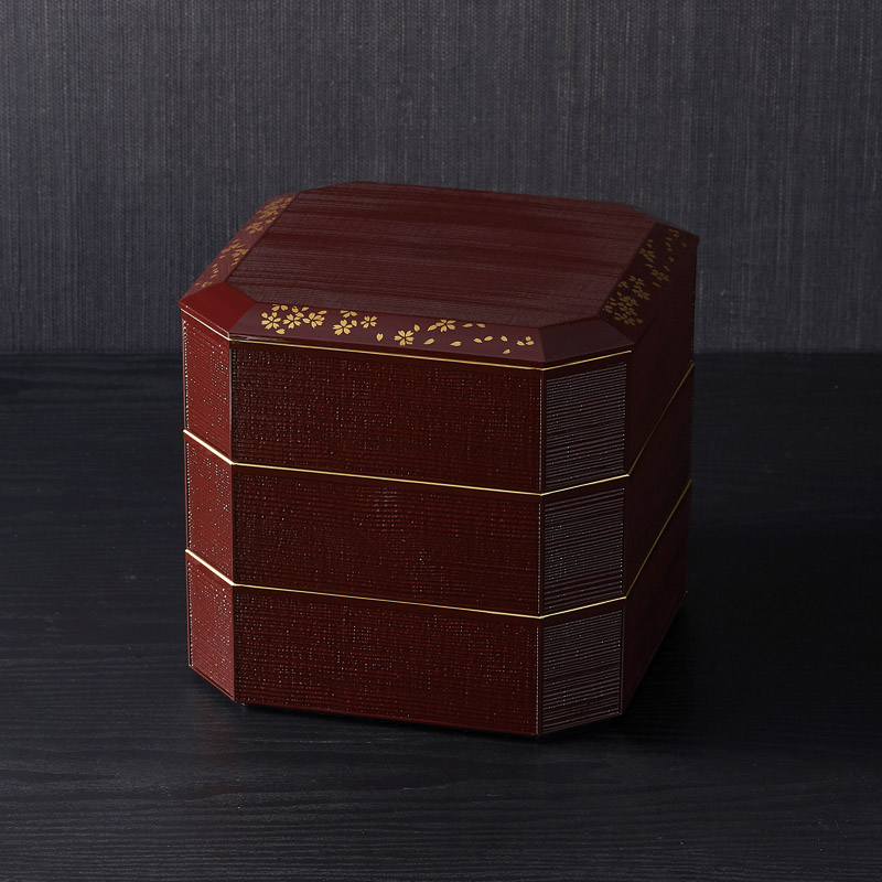 山中塗 溜塗 さくら 6.0焼杉三段重