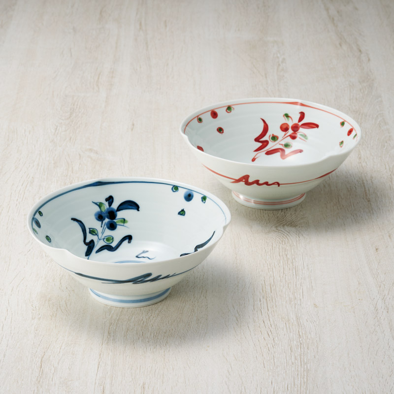 波佐見焼 万歴 手描き6寸多用鉢ペア