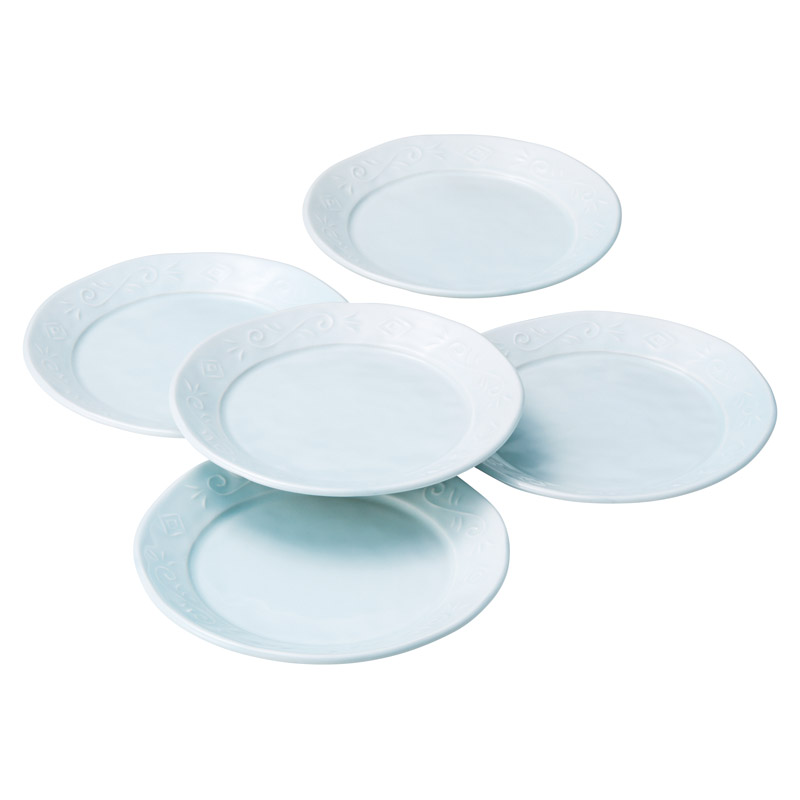 青白磁凜水 唐草紋 7寸皿5枚揃