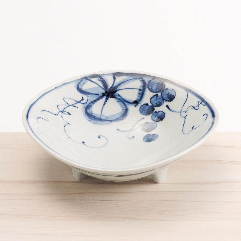 波佐見焼 古染青磁ぶどう絵 サラダ三ツ足鉢