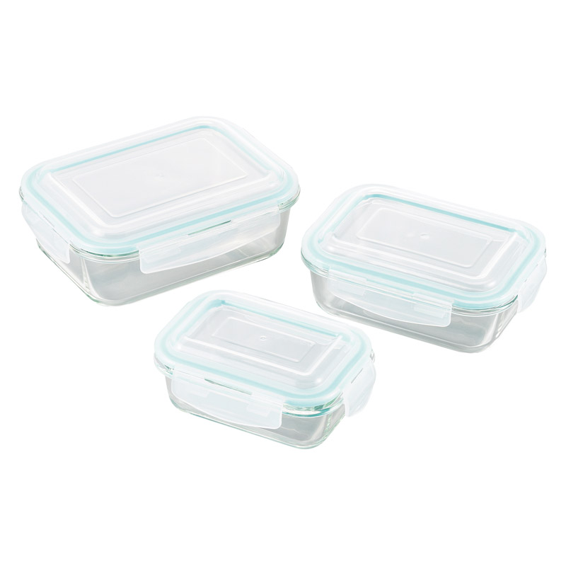 オーブンレンジ対応耐熱ガラス保存容器3pcs
