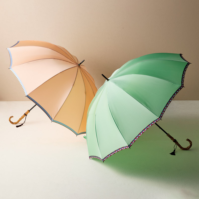 甲州織12本骨裾織手開き長傘セット(桃色・緑色)