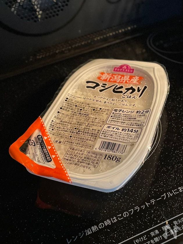 (1) パックご飯はパッケージの表記どおり温めておく。