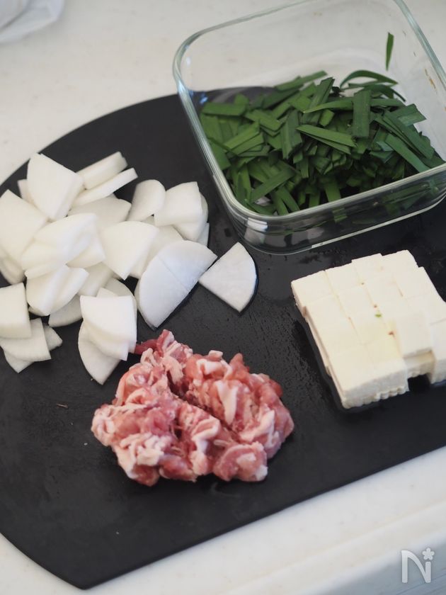 ニラ...3〜5cm幅に切る。