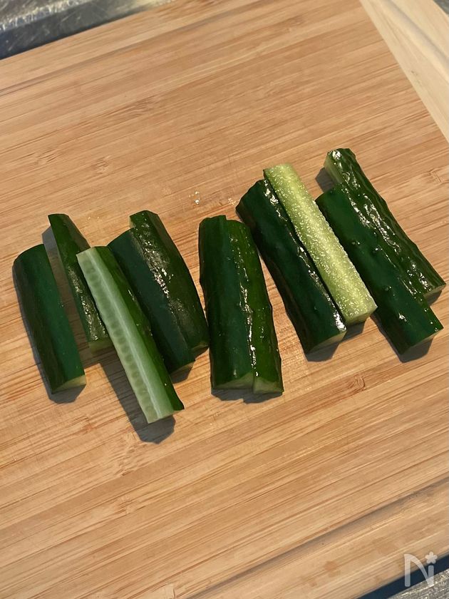 (1) ①きゅうりはスティック状に切り、器に盛っておく。