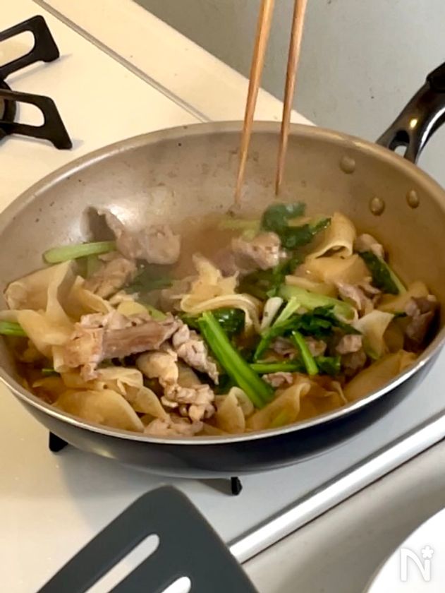 *小松菜の代わりに、ピーマンやニラなど火の通りの早いお野菜で代用可です。