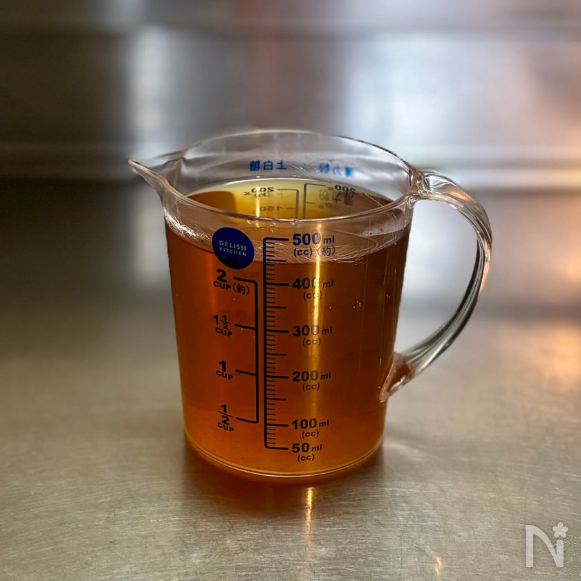 (1)鍋に米と工程5の合わせ調味料を入れて中火にかけ、7〜8分かけて煮立たせる。