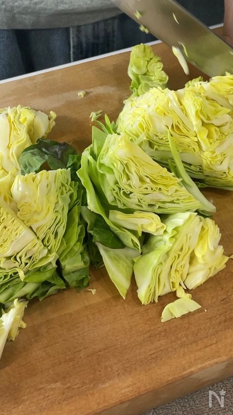 (1) キャベツを食べやすい大きさに切り、しめじは石付きを落として手で割く。