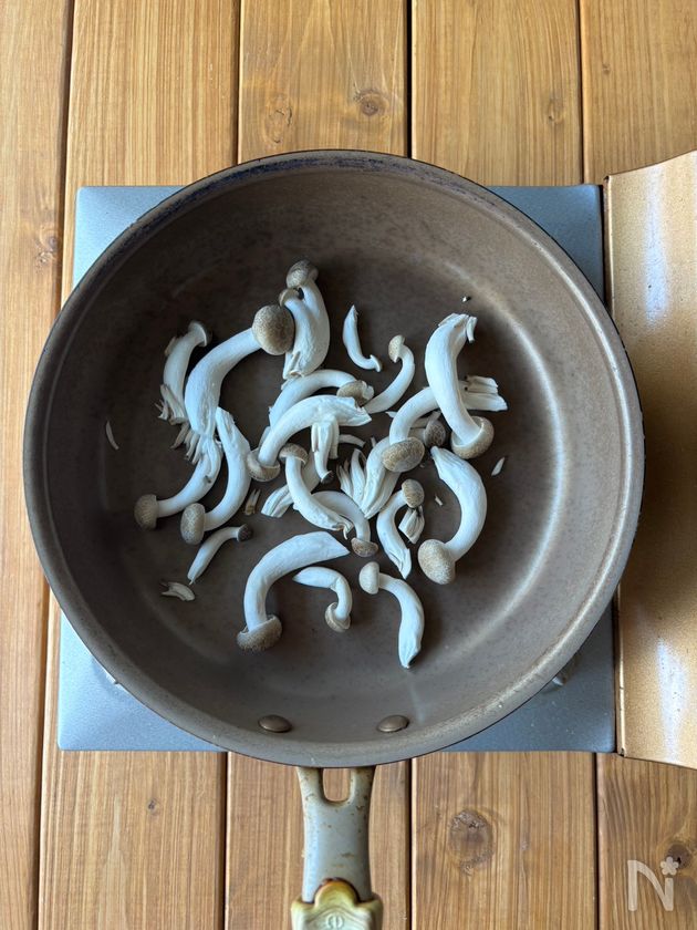 (1) しめじは手で割く。