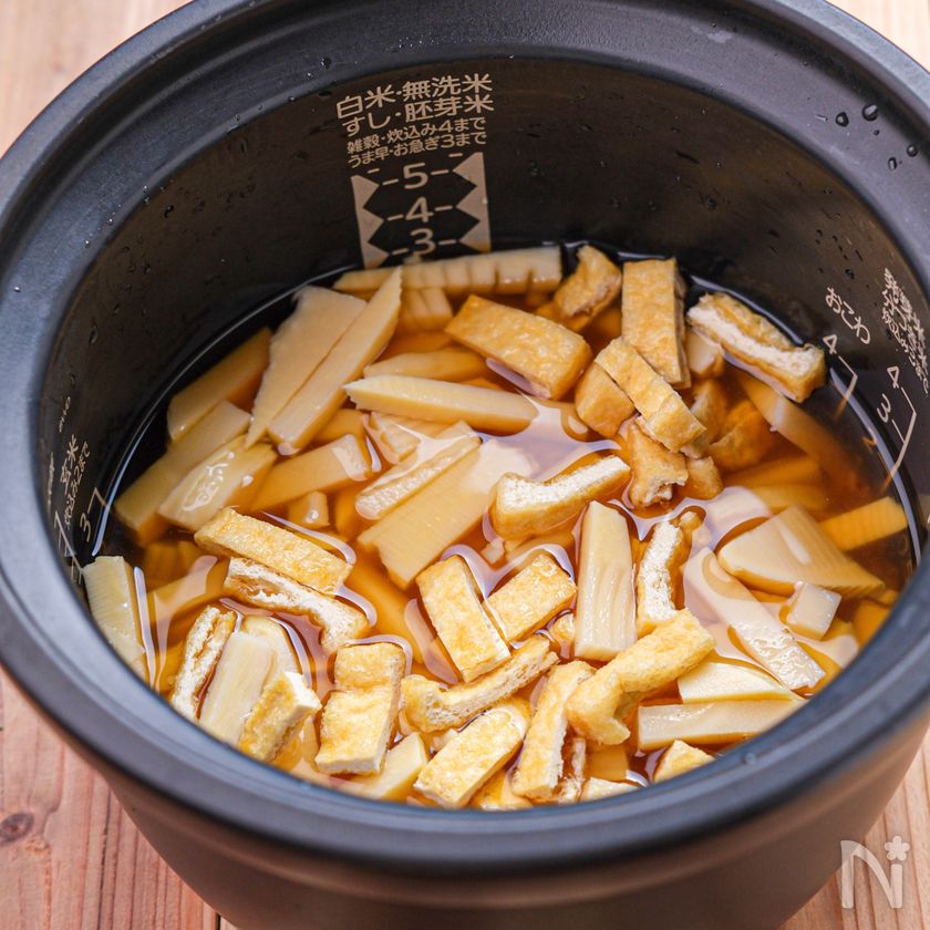 【たけのこと油揚げの炊き込みごはん】白だしで♪春の炊き込み♡