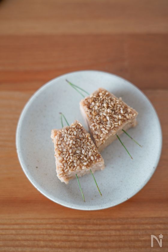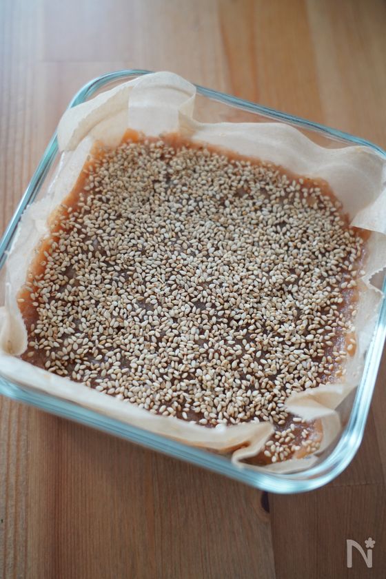 (3) 上にいりごま(白)をまんべんなくふりかける。
