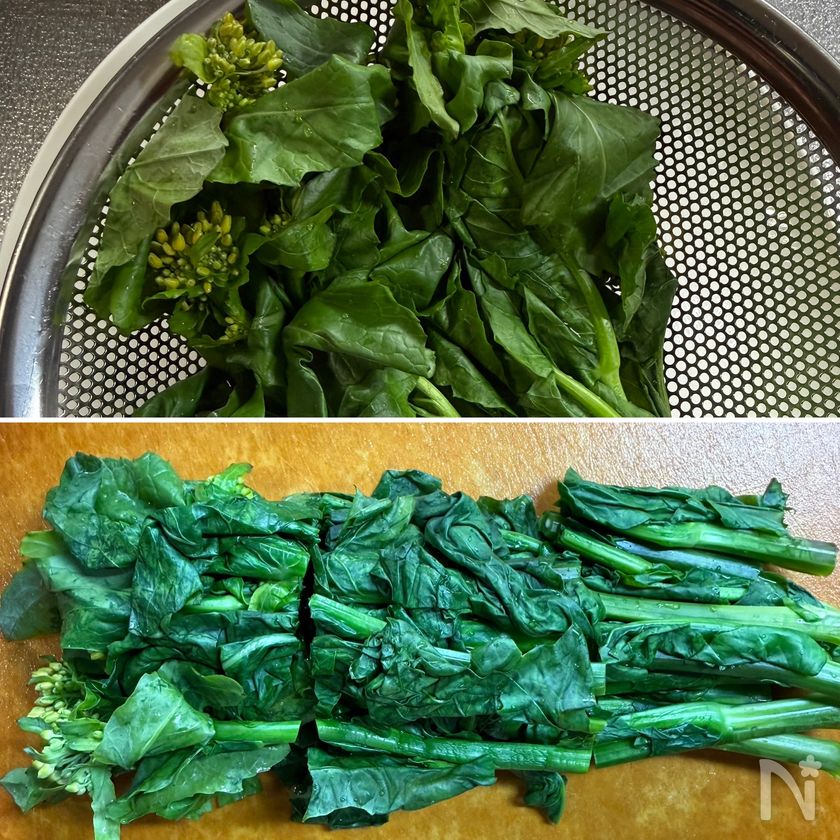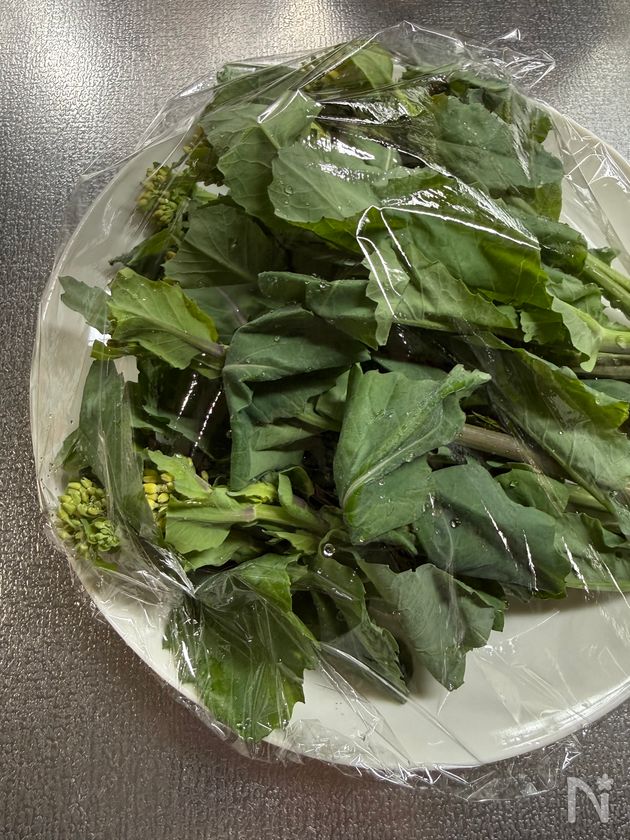 *菜の花の芯が太いとレンジ加熱時間が足りない場合があります。まだ固い場合は様子を見ながら追加加熱してください。