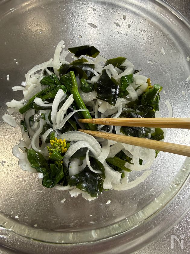 菜の花と新玉ねぎのさっぱりわかめサラダ