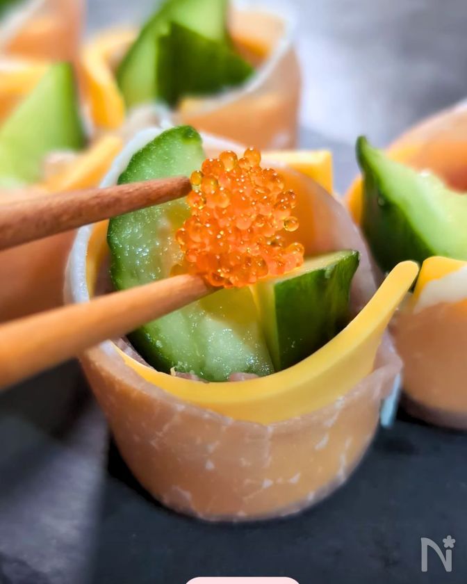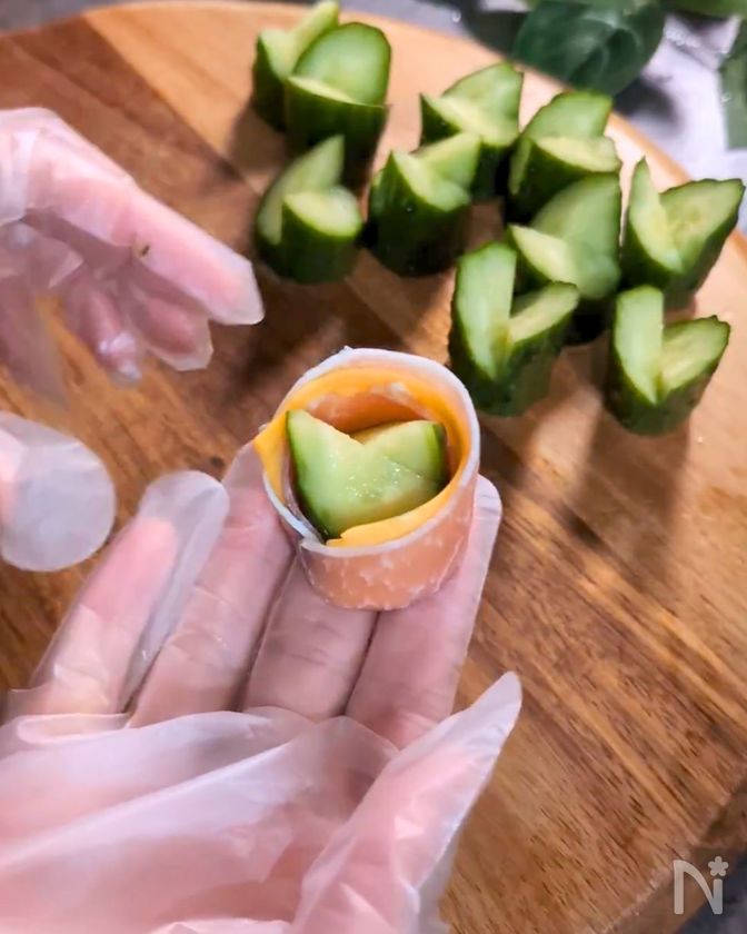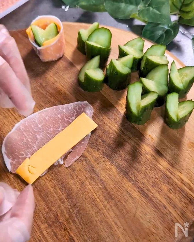 【クリスマスの前菜に】きゅうりの生ハムチーズ巻き