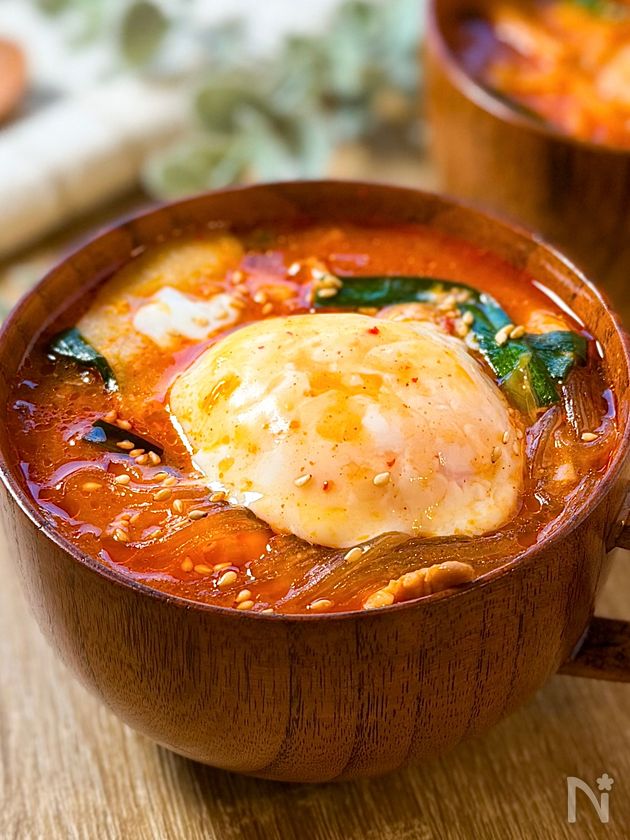 ・温泉卵がない場合は、仕上げに卵を割り入れてふんわり火を通してもOKです◎