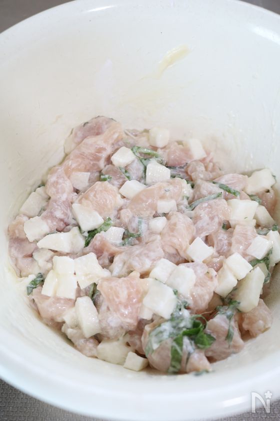 鶏むね肉は皮を除き、1cm角に切る。