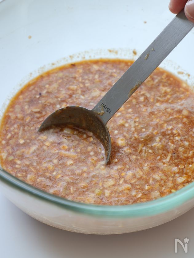 [B]砂糖・醤油・白練りごまラー油(具入りを使用)・白すりごま:各大さじ1/2