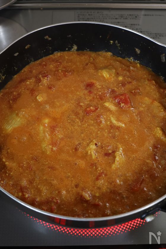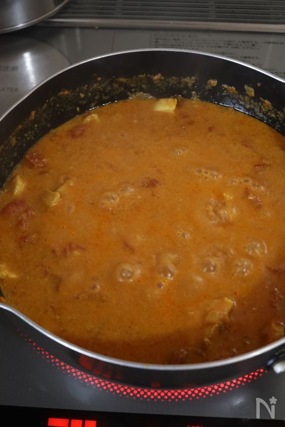 蓋を開け、中火に戻してさらに水分をとばしながら5分ほど煮る。(とろみがついてくるまで)