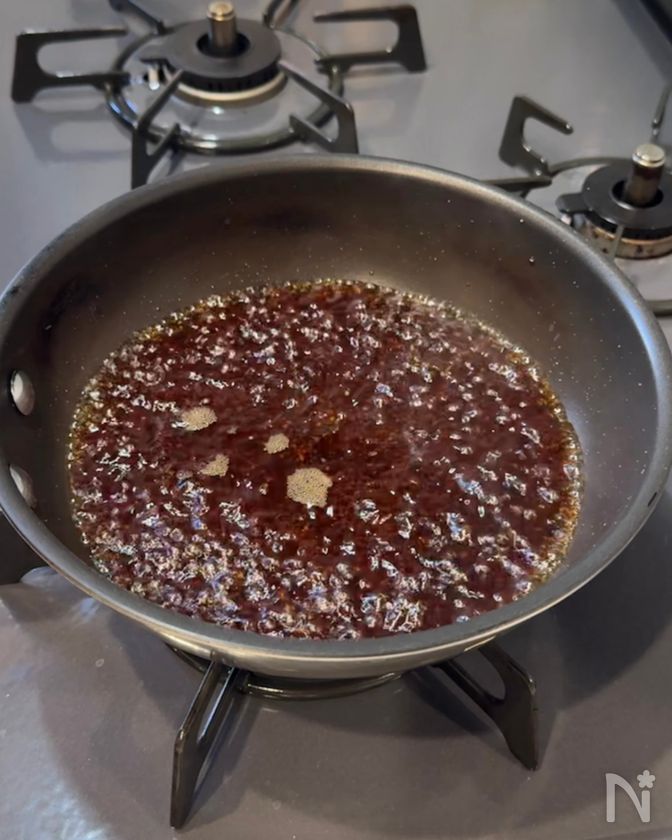 フライパンに【B】を入れてよく混ぜ、弱中火をつける。