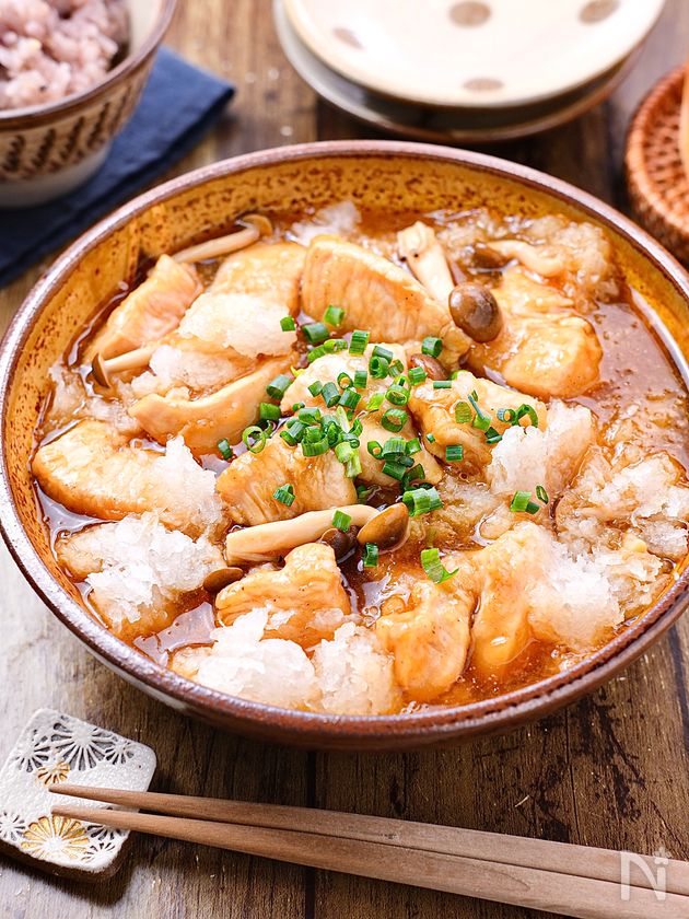 【鶏むね肉ときのこのおろしポン酢煮】とろ〜り♡10分おかず!