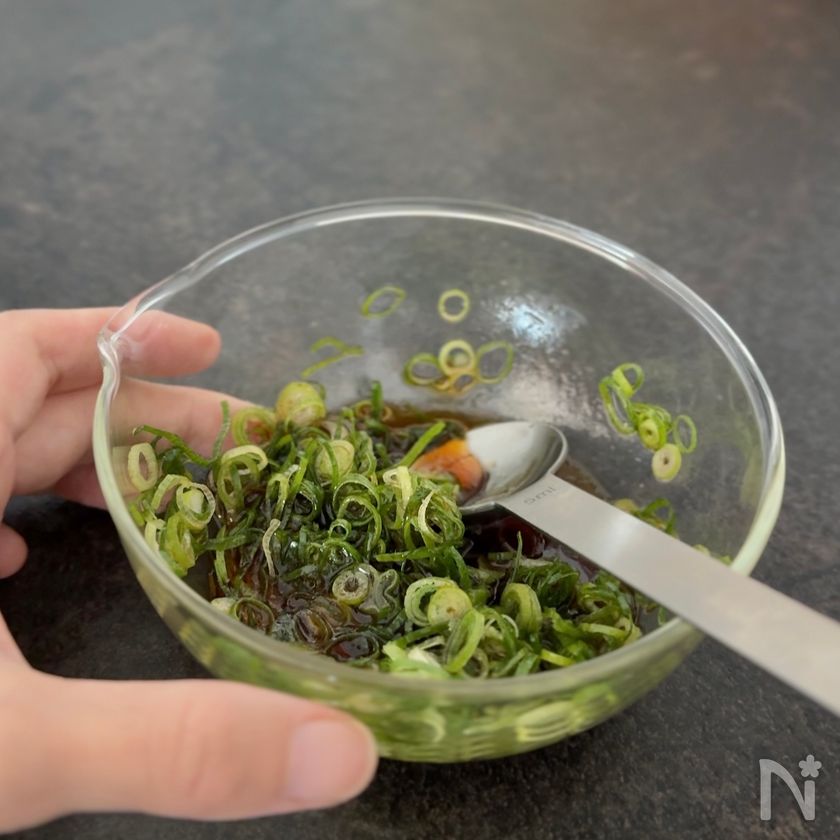 (3) 【A】と刻みねぎを混ぜてタレを作る。