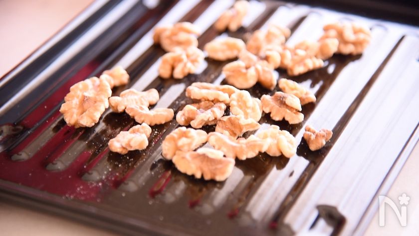 (3) くるみはオーブントースターで2〜3分素焼きします。