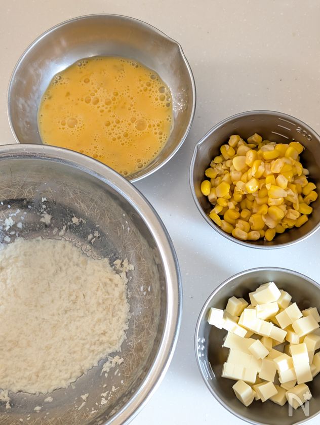 【材料】コーン缶は、冷凍のカーネルコーンや、真空パックのとうもろこしを芯からはずしたものでもOK。甘味のあるコーンがおすすめです。