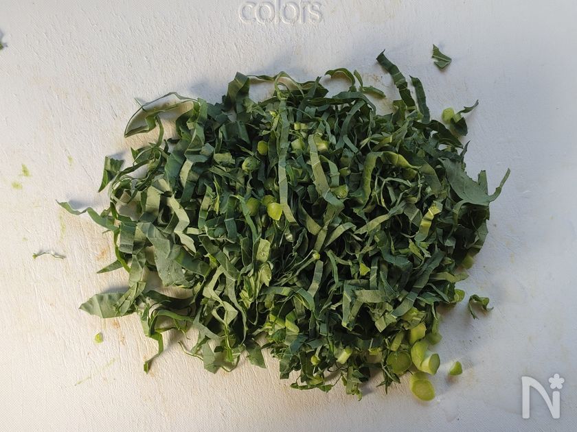 ・ソフトケールが手に入らないときはレタスの千切りでも。