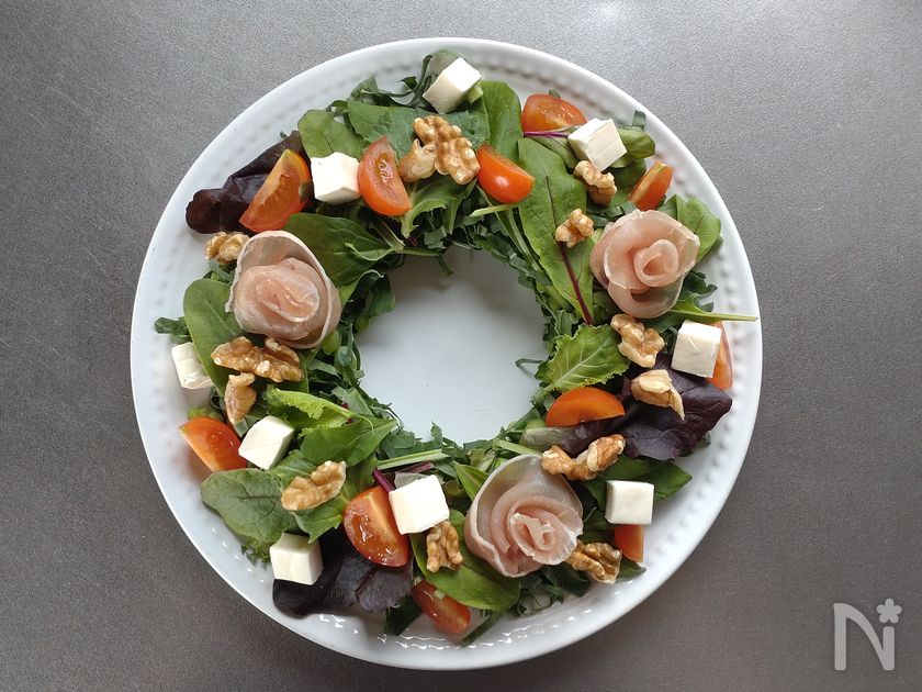 ・平皿の中央にココットを置いてから盛り付けると簡単に綺麗なリース型に盛り付けられます。