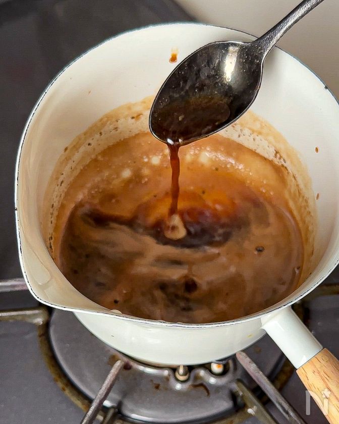(4) 小鍋に【A】を入れて中火にかけ、1〜2分ほど煮詰める。