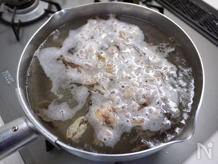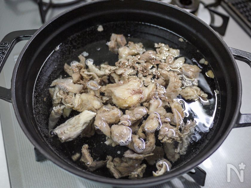 (下準備) 牛すじ肉は熱湯でさっと茹でアクを取り除きます