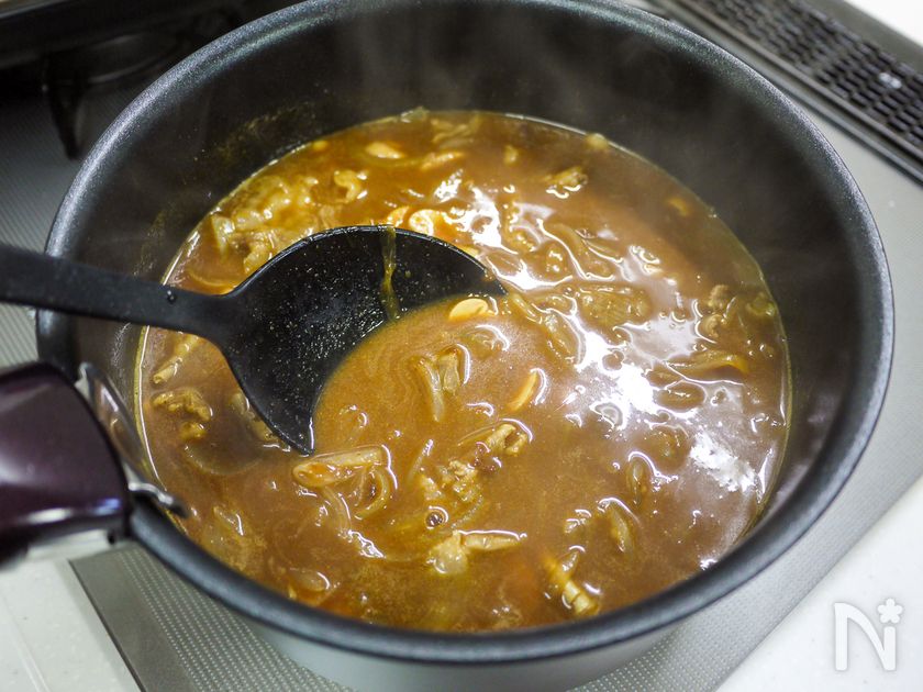 (4) カレールーを加え弱火で少し煮込んだら出来上がりです