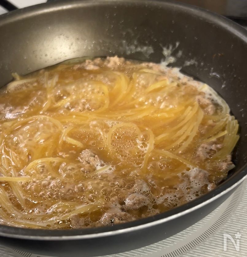 (3) パスタを入れたら、表記時間+2分ほど茹でる。