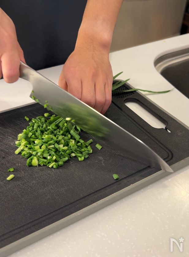 (下準備) にらは刻んでおく。