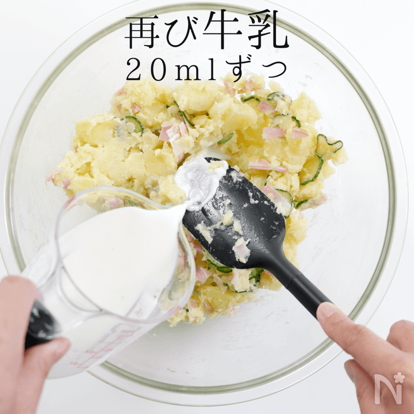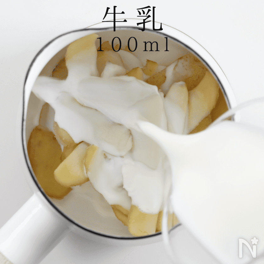 ここはお好みで。滑らか派の方は牛乳を多めに。ホクホク派の方は牛乳を少なめに。