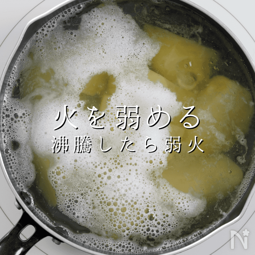 ①弱火で茹でる