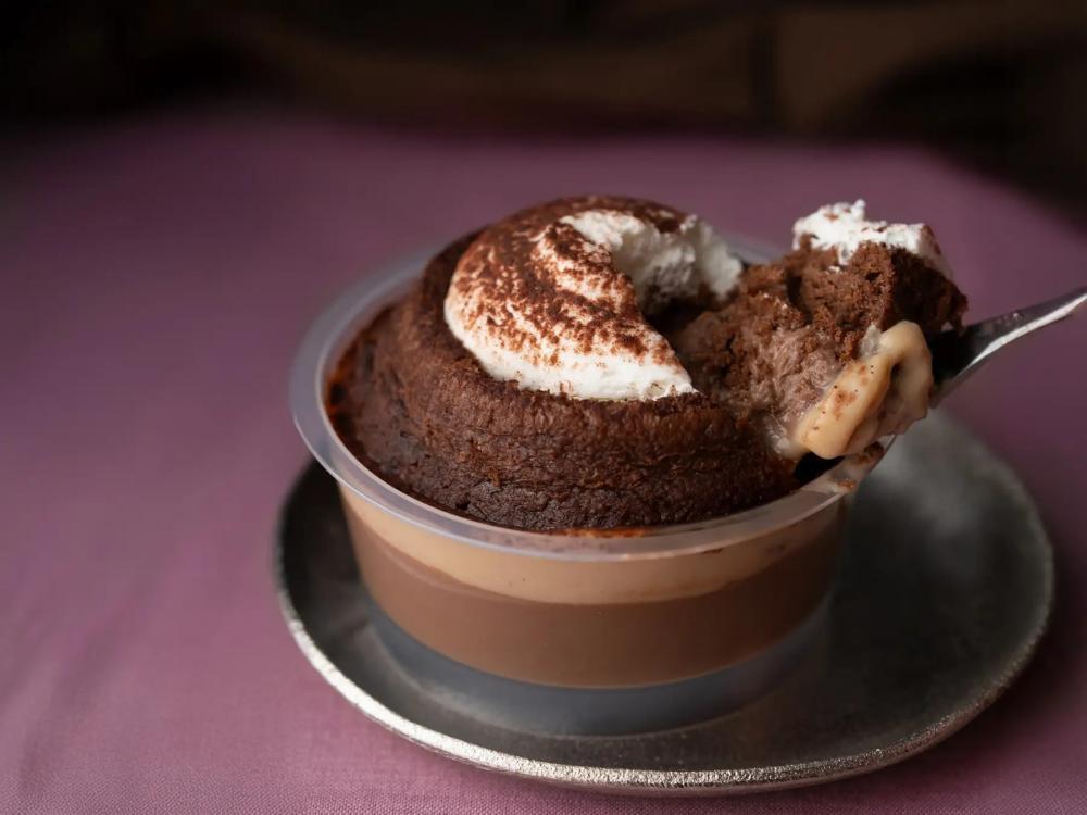 ガトーショコラと濃厚プリンを一体化させた贅沢なデザートです。