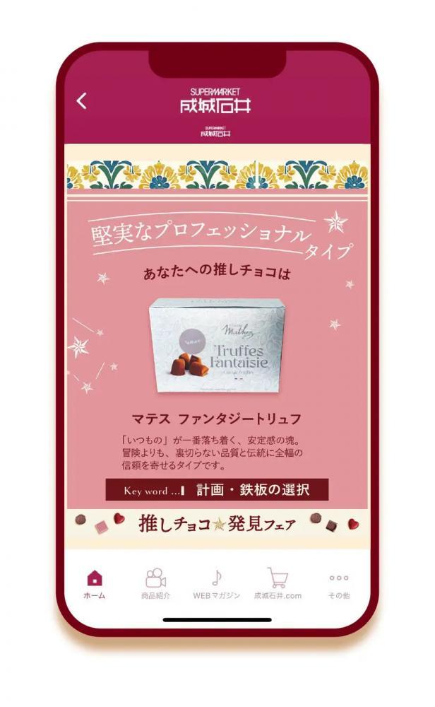 公式アプリでは、簡単な質問に答えるだけで、今の気分や好みに合った推しチョコを診断してくれます。自分らしい一粒に出合えるコンテンツです。