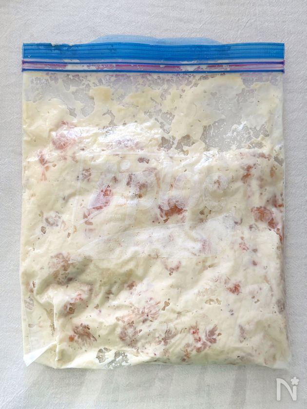 ・①の工程は、手だと潰しにくい場合は、フードプロセッサーを使用してもかまいません。
